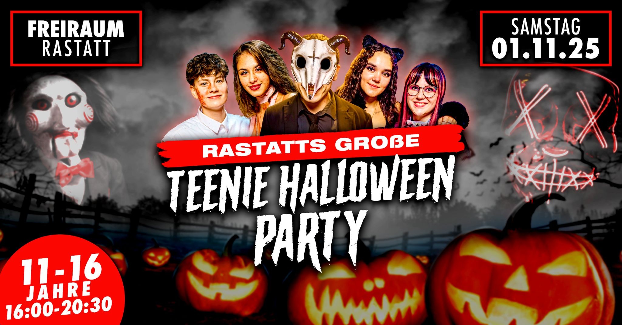 Am 01. November feiern wir die erste Teenieparty für alle 11-16 Jährigen im Freiraum Rastatt. Erlebt das aufwändigste Teenie Halloween-Event der Region mit gigantischer Dekoration, vielen Specials und unvergesslicher Atmosphäre im Freiraum Rastatt! 💯